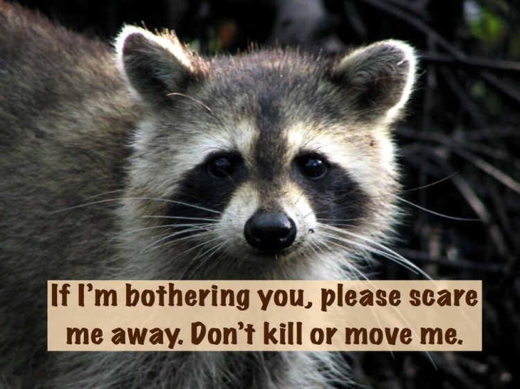 In nearly all cases, a raccoon that has gotten too familiar with a human home— hanging out on the deck or moving into the attic, for example— will leave after after the home owners use humane harassment techniques to scare them away.