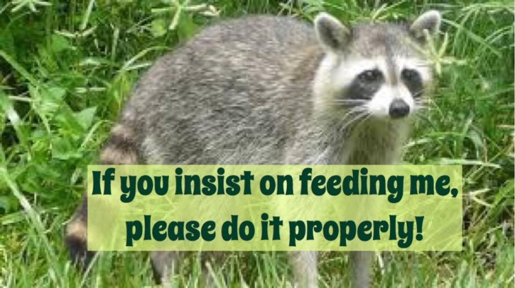 It’s not a good idea to feed wild raccoons, but there are a lot of people who will do it anyway. If you absolutely insist on feeding a wild raccoon, please follow these guidelines: