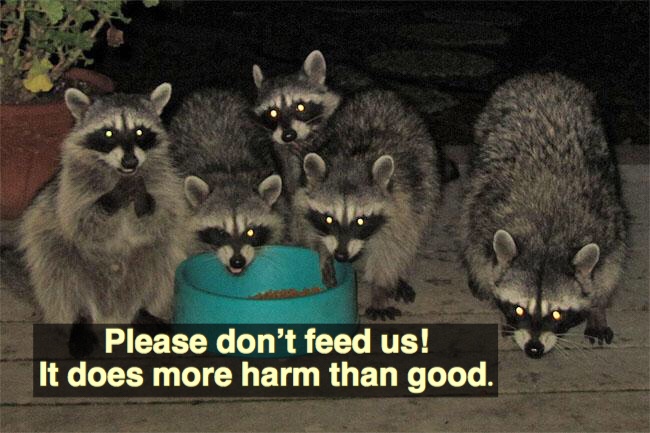 The problem is that this almost always backfires catastrophically. Here are a few examples of ways that I have personally witnessed raccoon-feeding go horribly wrong: