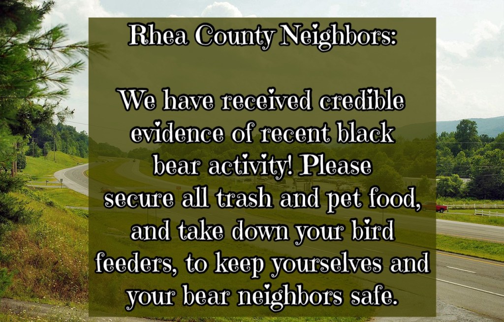 If you are in Rhea County, please help your bear neighbors by making sure you haven’t made any unnatural food sources accessible to bears. Please take down your bird feeders, feed your pets inside, put a latch on your trash can, and throw away those Halloween pumpkins that are still on your porch. Protect your bear neighbors so no one gets hurt. 🐻 🐾