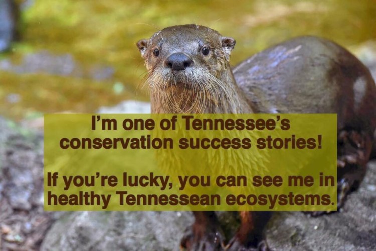 Most of my fellow Chattanoogans are familiar with these cuties, who are a popular attraction at the Tennessee Aquarium! The North American river otter is considered an indicator species, meaning that its presence (or absence) in an ecosystem is a major indicator of the health of the environment. As sensitive animals at the top of the food chain, they are often the first to succumb to habitat loss, pollution, and introduced diseases.